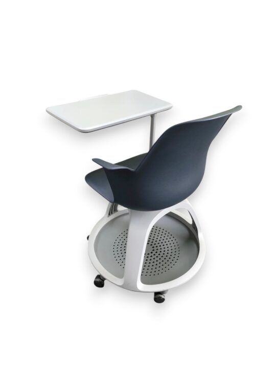 Tablette pivotante et ajustable s’adaptant à toutes morphologie, basculante sur le côté lorsqu’elle n’est pas utilisée.