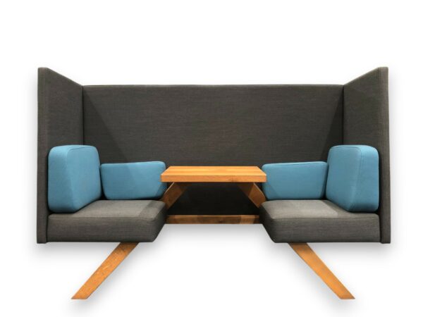 1 fauteuil coque PROFIM FAN 10HW, tissu BLEU CIEL, piètement Hêtre massif,