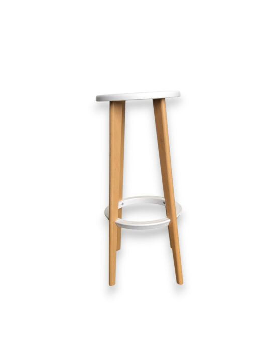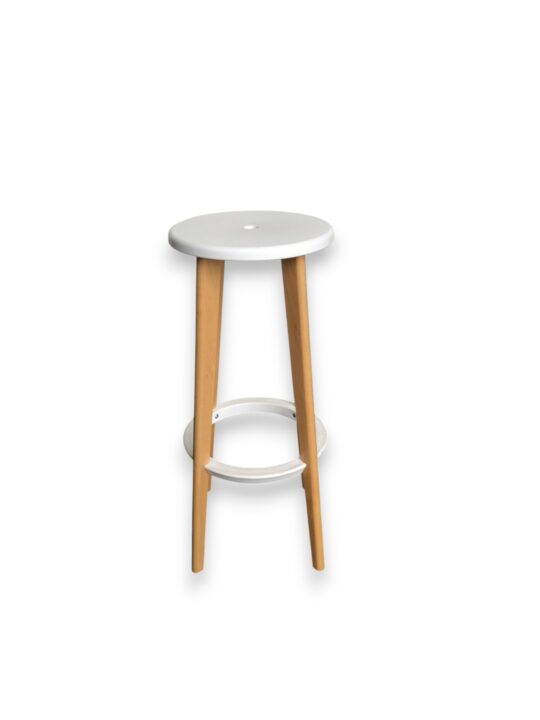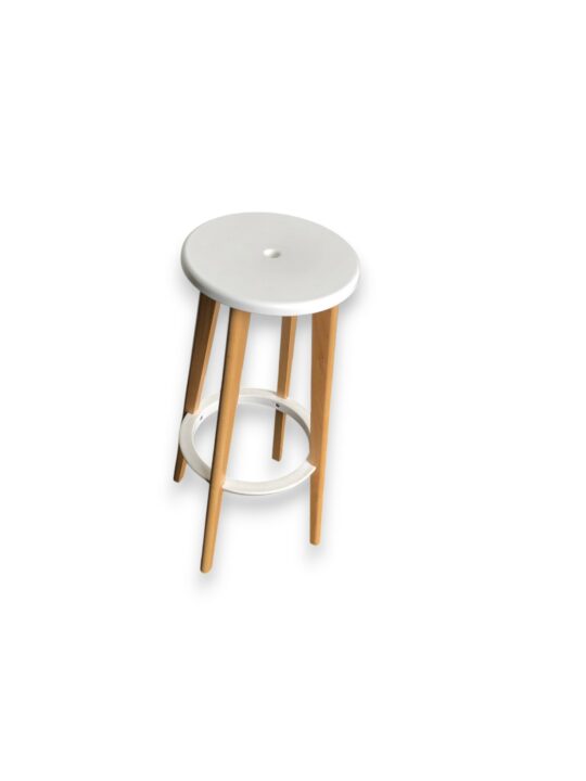 TABOURET HAUT ASSISE POLYPRO BLANCHE ET PIEDS BOIS