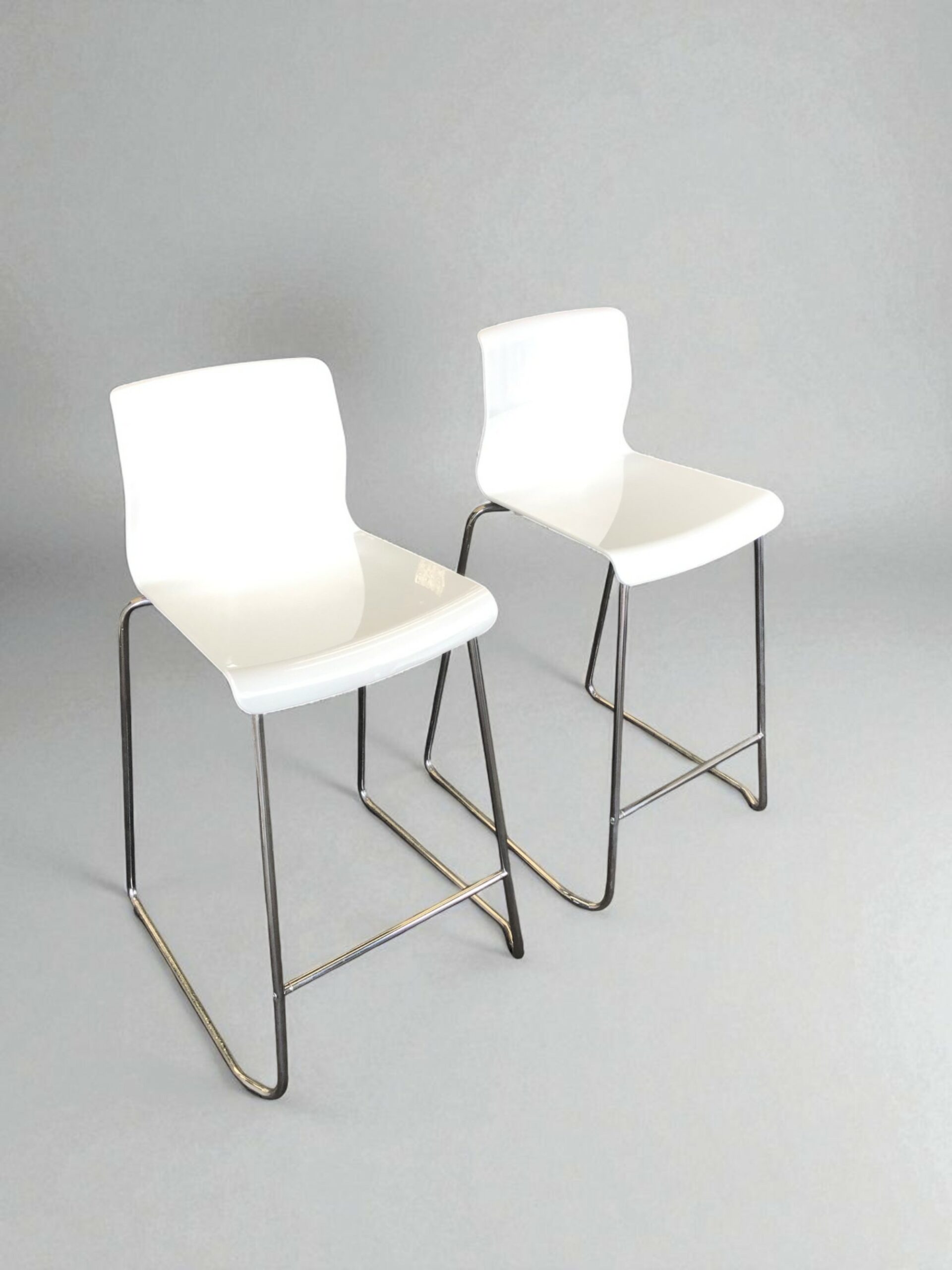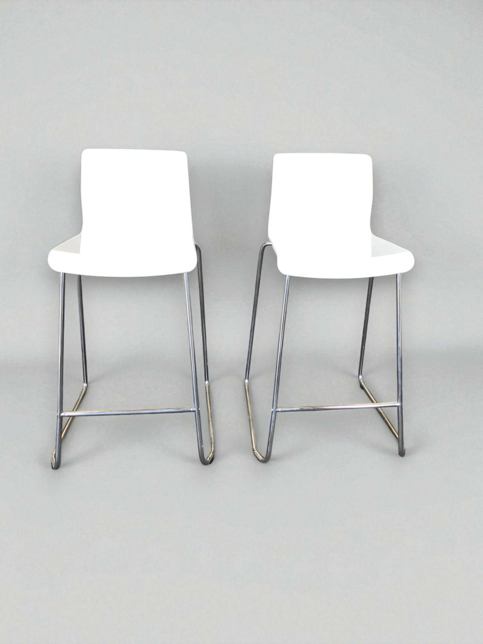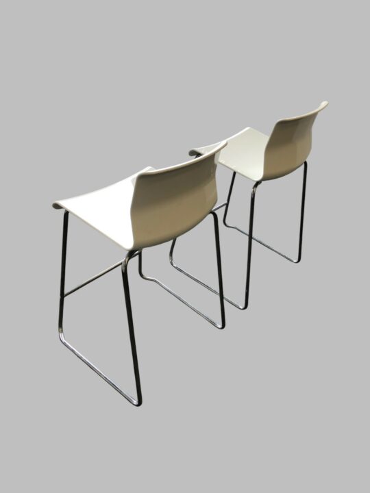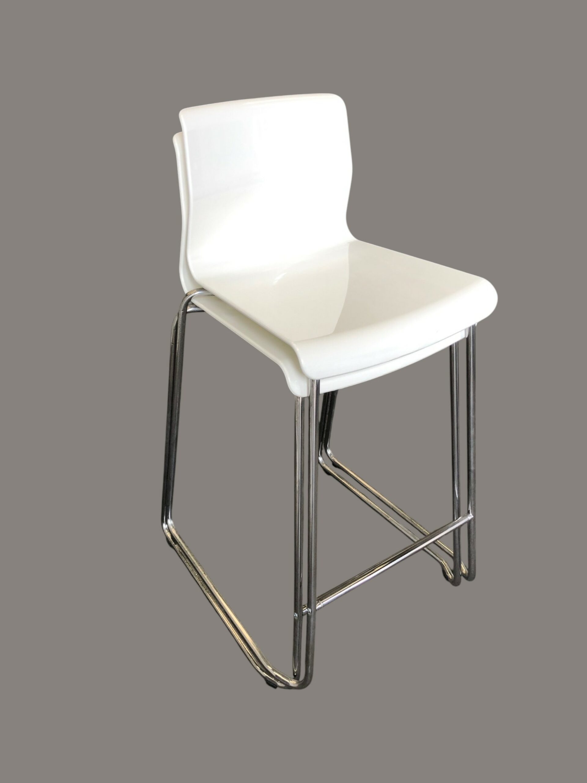 TABOURET HAUT COQUE BLANC ET PIEDS CHROME