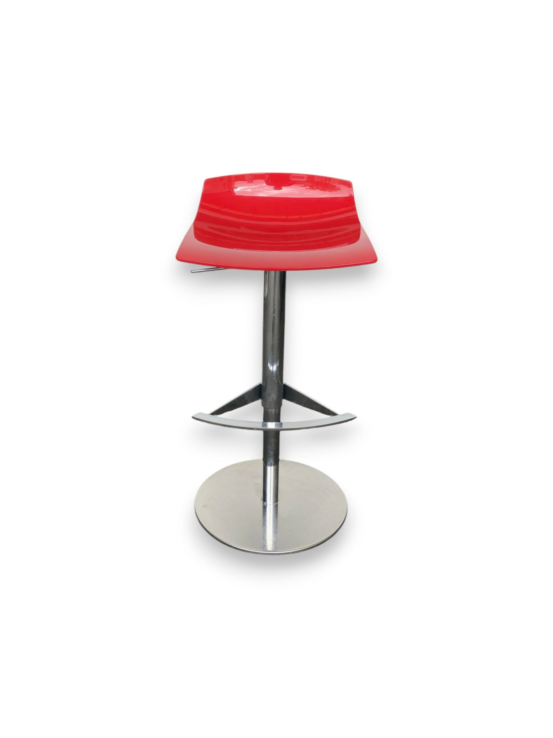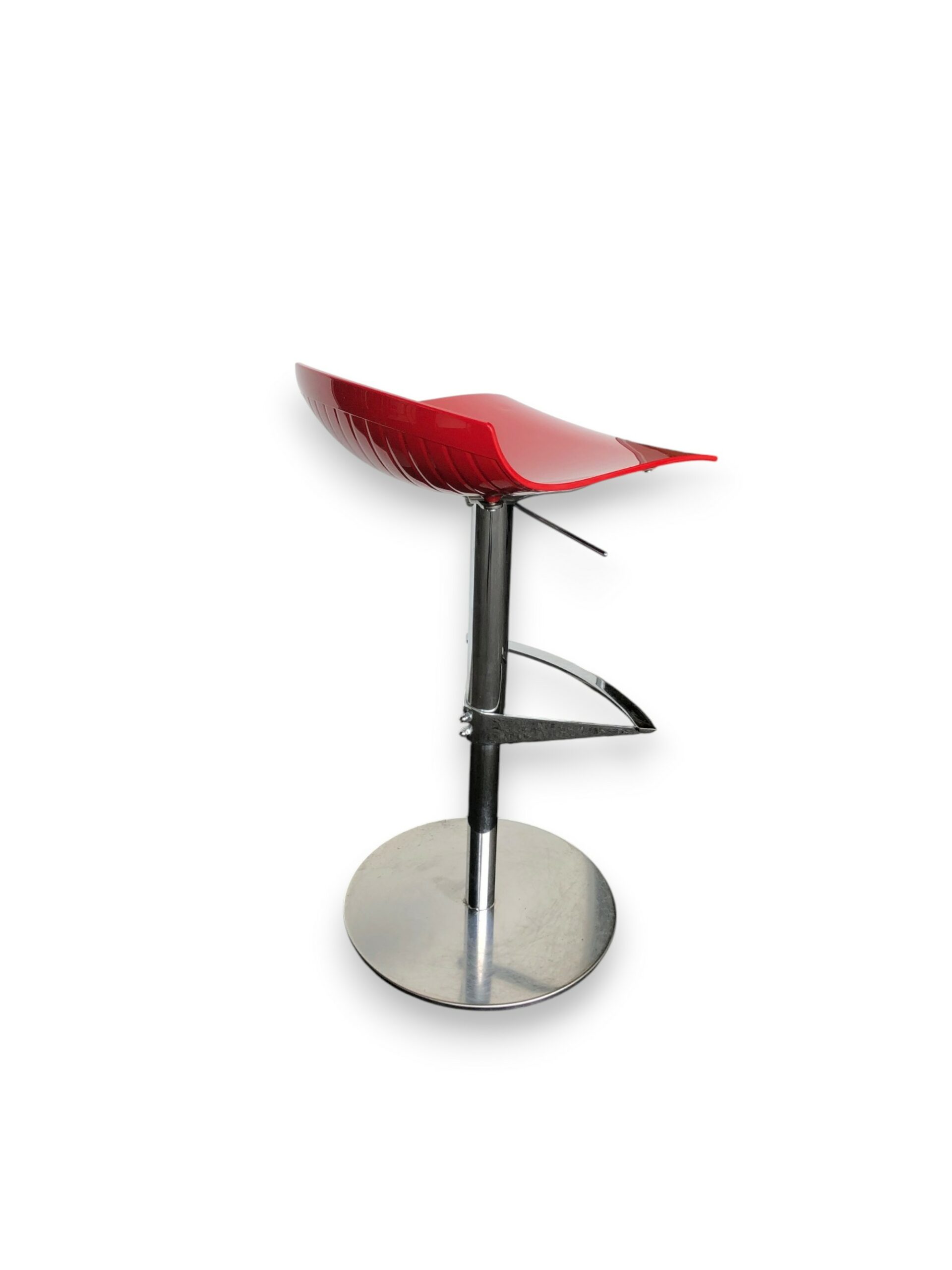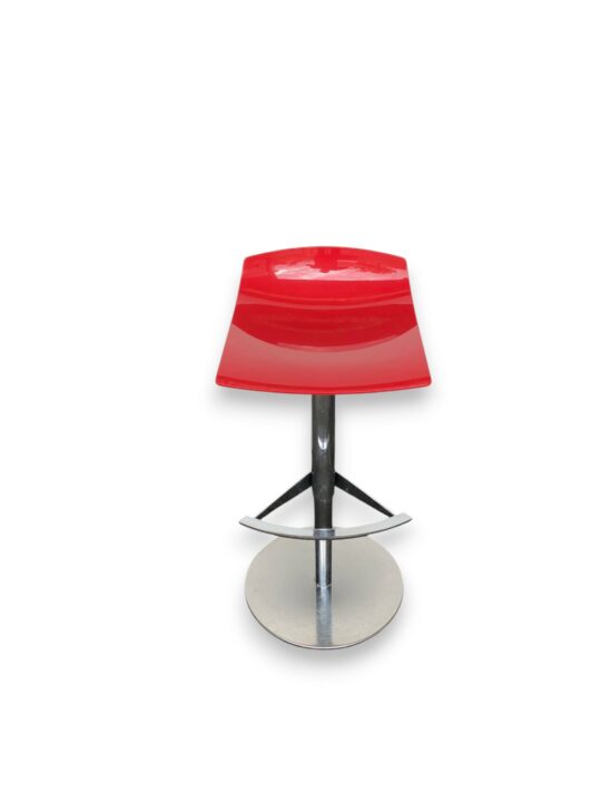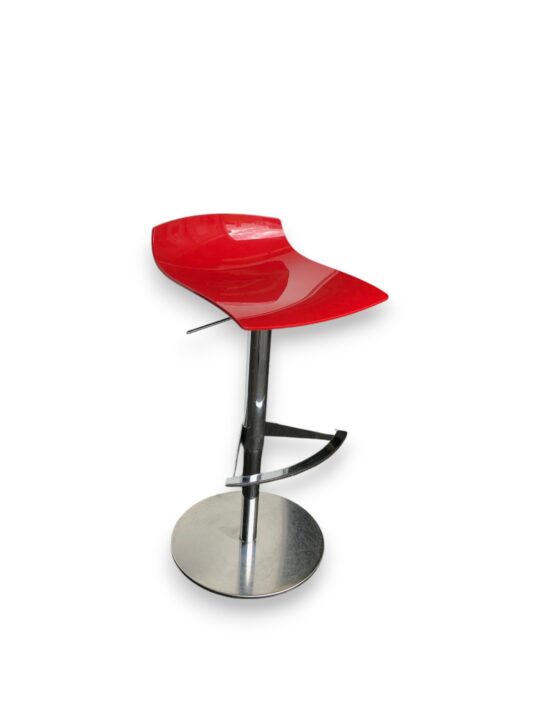 TABOURET HAUT COQUE ROUGE ET PIEDS CHROME REGLABLE
